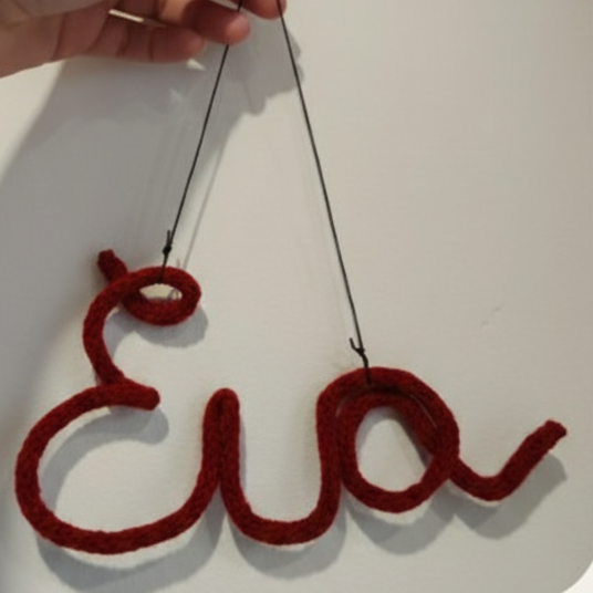 Αυτό το μοναδικό, χειροποίητο διακοσμητικό τοίχου είναι ο τέλειος τρόπος να προσθέσεις μια προσωπική πινελιά σε κάθε χώρο. Το όνομα σου, πλεκτό με απαλά νήματα, δημιουργεί ένα έργο τέχνης που θα σε συνοδεύει για πάντα.