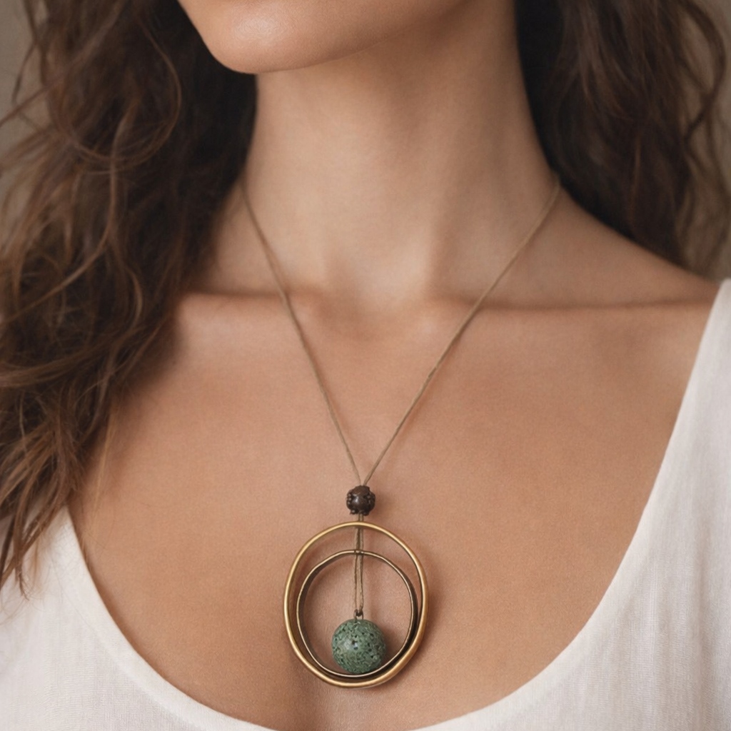 Κολιέ in corde όλη τη σεζόν. Ιδιαίτερο κολιέ με λάβα ημιπολιτική πέτρα και μεταλλικά στοιχεία που μπορεί να φορεθεί όλες οι εποχές που εξυπηρετούν τη θηλυκότητα σε κάθε λεπτομέρεια .