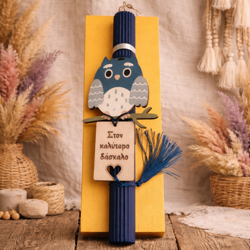 Λαμπαδα in corde Noctua χειροποίητη .Για τον δάσκαλο που κάνει τη γνώση φως. ✨