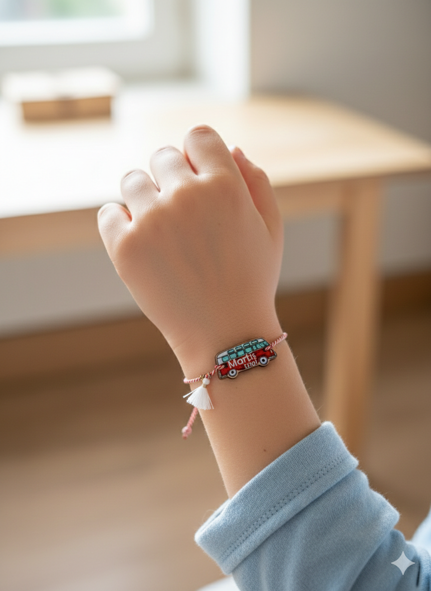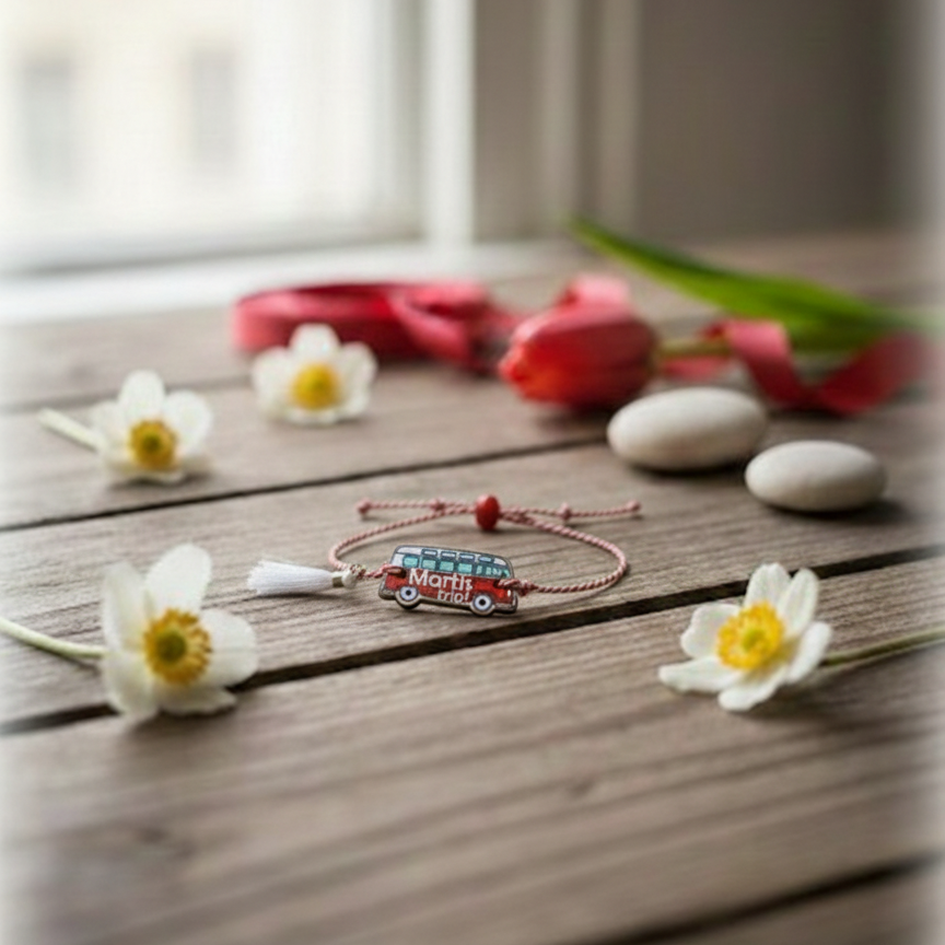 Παιδικό  μαρτάκι in corde "χίπικο" λεωφορειάκι   ταυτότητα  plexiglass *MARCH road trip*  σε βαμβακερό κορδόνι με αυξομειούμενο κλείσιμο  για να προσαρμόζεται εύκολα σε κάθε χέρι.Μια πρόταση από την συλλογή μας  Mars.Ένα από τα ωραιότερα έθιμα , μια από τις συνήθειες που κάνει εμάς τους μεγαλύτερους να αναπολούμε με νοσταλγία τις μέρες της αθωότητας της παιδικής μας ηλικίας, είναι το «βραχιολάκι του Μάρτη».