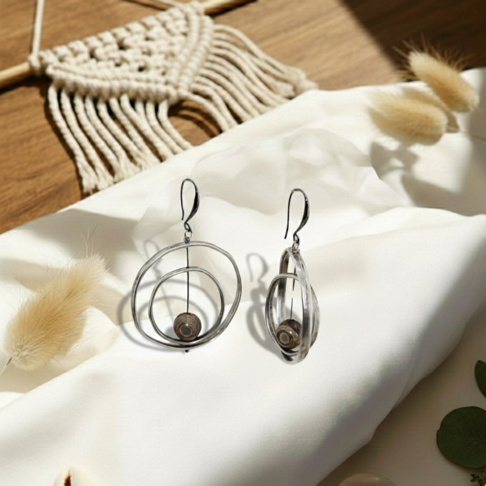 Σκουλαρίκια in corde Κύκλοι προσεγμένα ακανόνιστοι μεταλλικοί με ημιπολύτιμη πετρά αχάτη .Ενα ιδιαίτερο κόσμημα που θα δώσει μια φινετσάτη πινελιά στο συνολικό μας outfit.Τολμήστε να φορέσετε μεγάλους κρίκους, μακριά chandelier σκουλαρίκια και κάντε τη διαφορά στην καλοκαιρινή σας έξοδο!